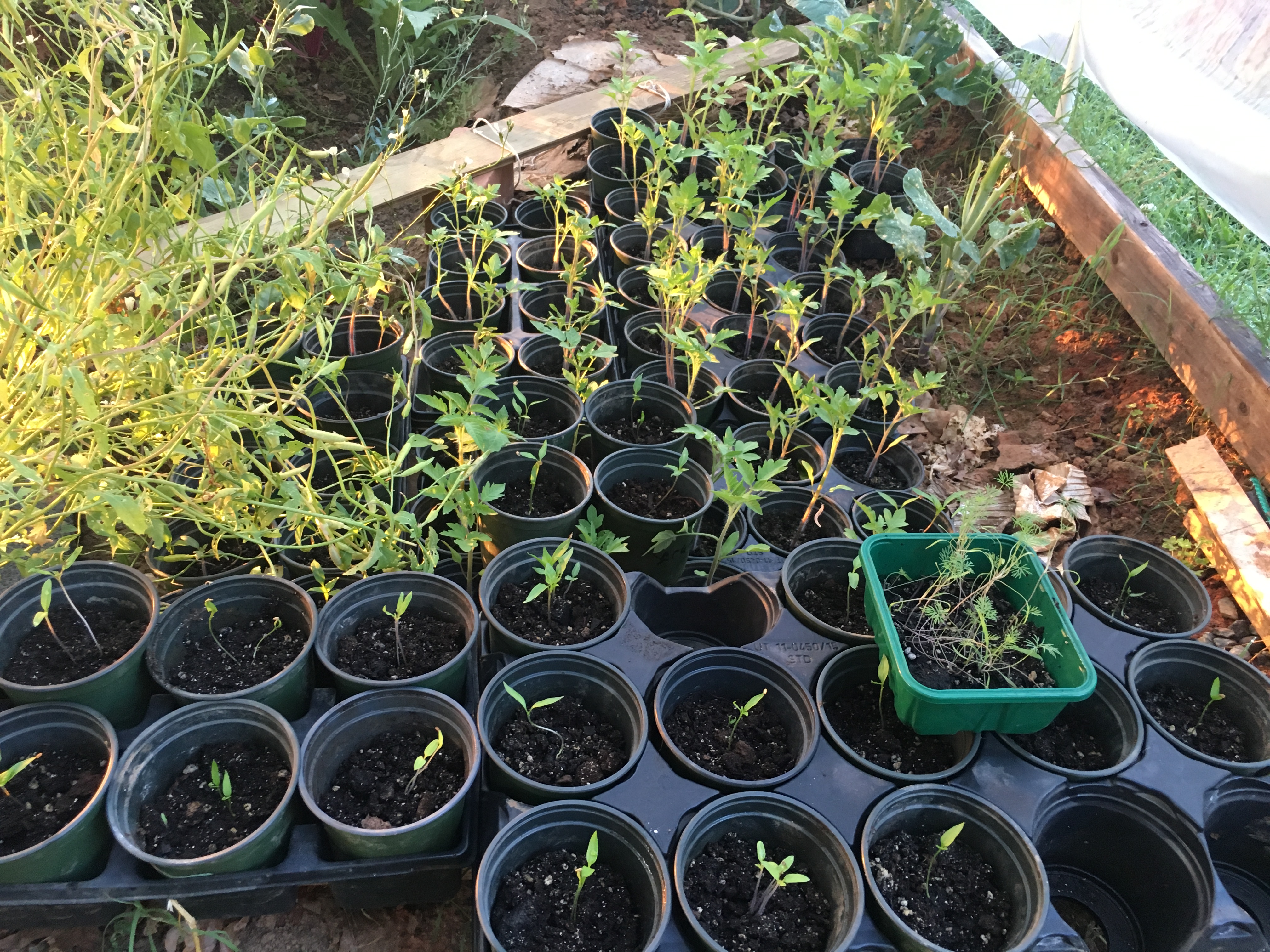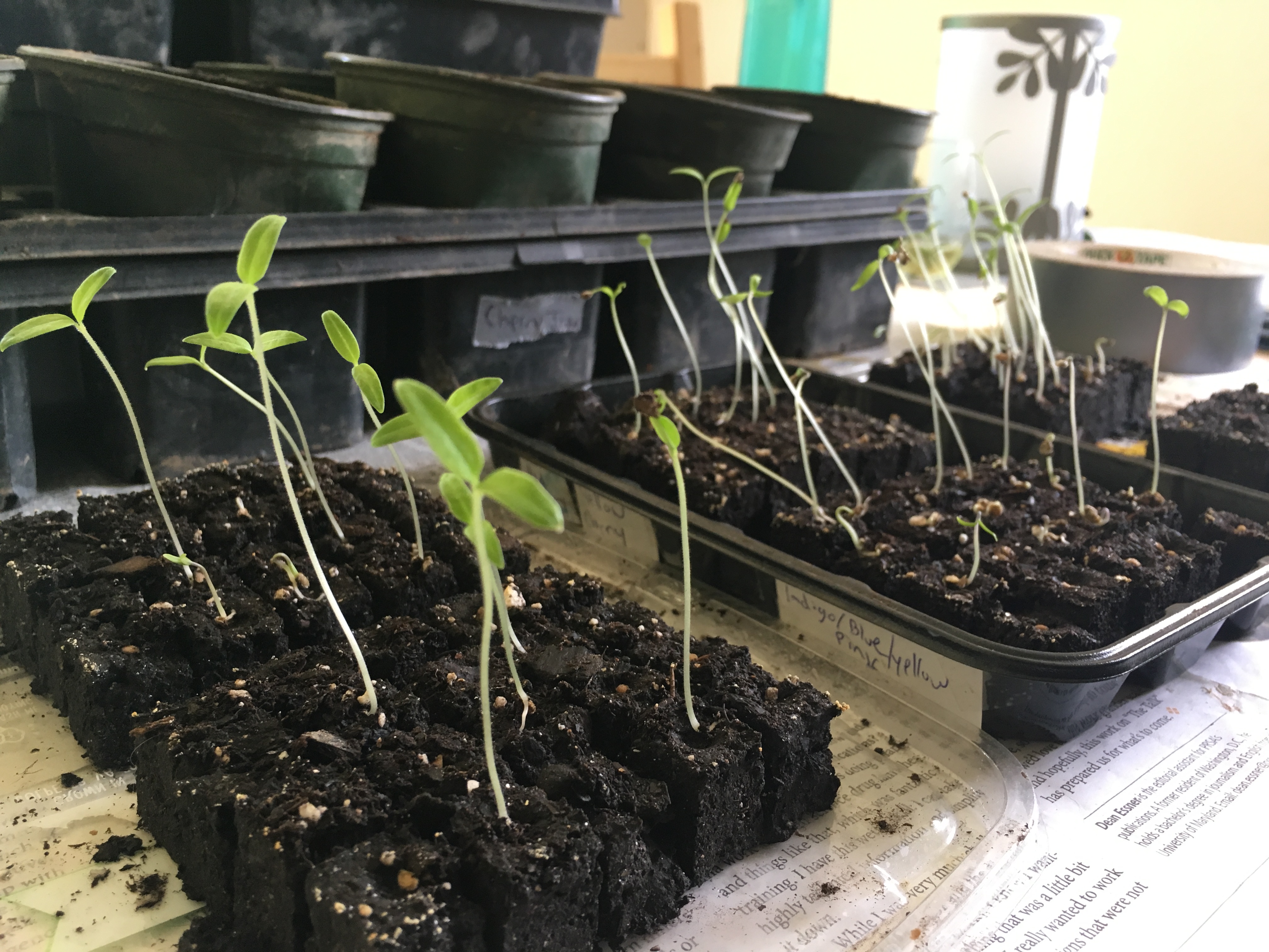 To save space, you can start seeds in soil blocks. You use a small press that you pack soil into that creates these little cubes. Once the plants sprout and start to grow you can transplant to a larger container, until it’s time to plant them in the ground.